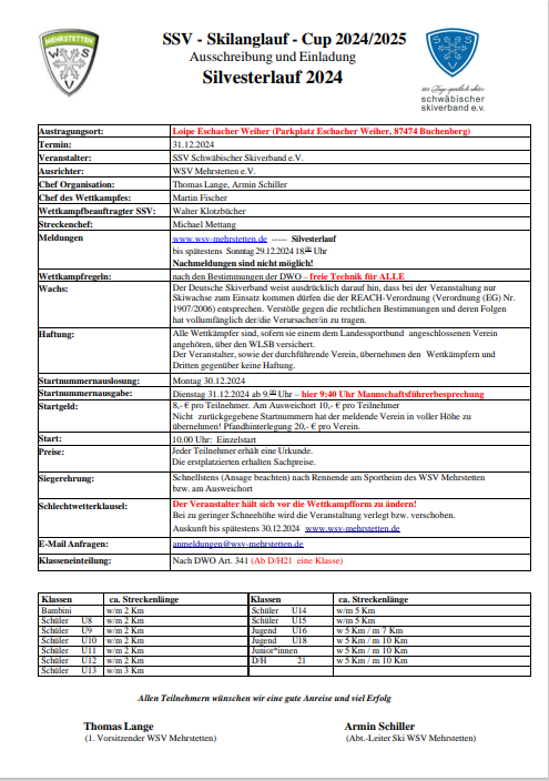 Mehrstetter Silvester Skilanglauf 2024